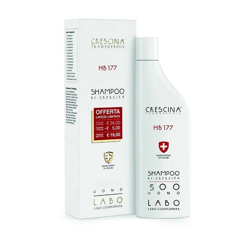 Lo Shampoo Crescina Ri-Crescita HB 177 è un detergente specifico per capelli radi a base dei principi attivi di Crescina Ri-Crescita HFSC (Brevetto Svizzero CH 703 390), dei complessi PLC12 (12 molecole Plate-Like), Bulge-Stem, Scalp Microbiome Complex e di 5 Enhancer.