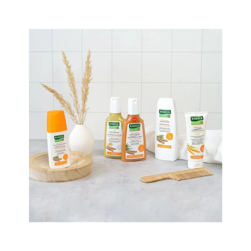 La LINEA NUTRITIVA al germe di frumento RAUSCH svolge un’azione idratante e previene la secchezza dei capelli.
