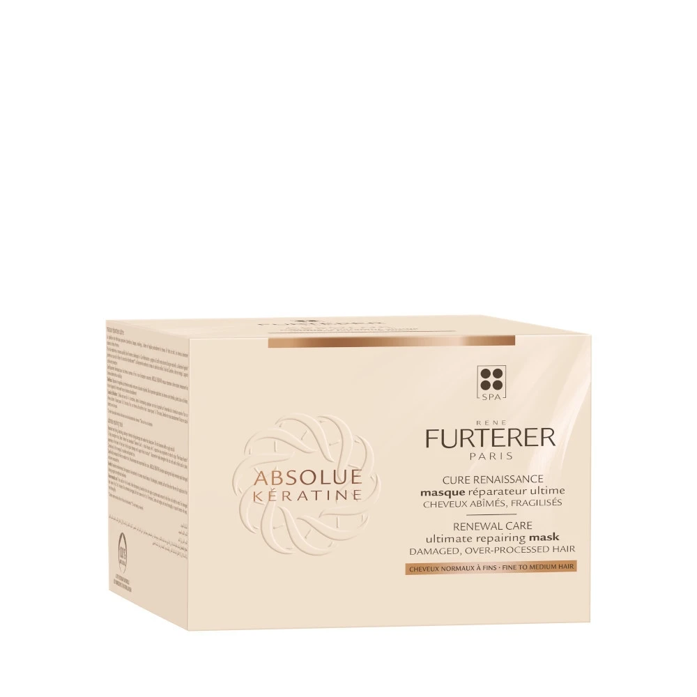 René Furterer ABSOLUE KERATINE Maschera ristrutturante estrema rivitalizza profondamente i capelli danneggiati, fragili e opachi a causa di ripetute colorazioni, passaggi di piastra e spazzolature.