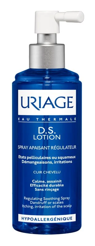 D.S. Lozione è una soluzione ad azione regolatrice, risanante, lenitiva. Modera il rinnovamento cellulare, elimina le squame e calma il prurito del cuoio capelluto. La sua formula è costituita dal Brevetto TLR2-Regul® (anti-irritazioni), dall’acqua termale di Uriage (lenitiva), dal Piroctone olamina (dermopurificante) e da un ingrediente attivo specifico: l’olio essenziale di Cade (anti-squame). Uriage D.S. Lozione per uso quotidiano, non lascia i capelli grassi e li rende docili al pettine. Il cuoio capelluto ritroverà rapidamente il suo naturale equilibrio e apparirà così più sano e senza forfora.